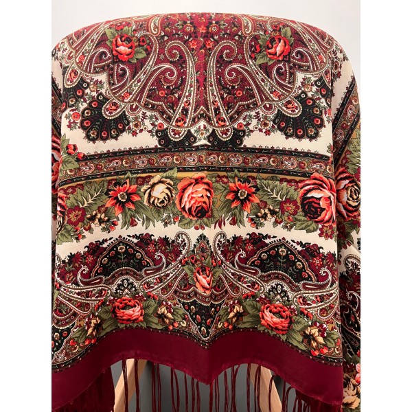 Şal superb, model rusesc, în culori vii, ce se poate purta atat la ţinutele de seară cat şi la cele tradiţionale.